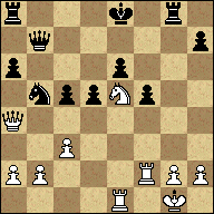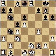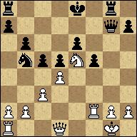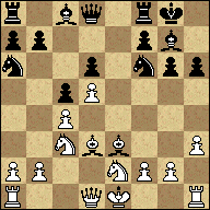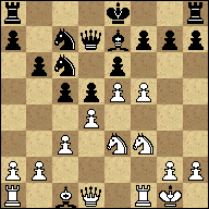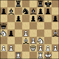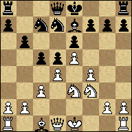 15... Кc4! Комбинационным способом подчеркива задержку белого короля в центре. Интересно, что в партии Да Силва - Лейтао (Бразилия 2001) черные прошли мимо этой возможности отступив конем на а6! 16. ab cb 17. Фb3