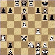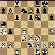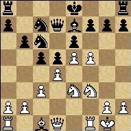 17... bxc3 14. Qxc4 cxb2 19. Ra3 Bd7. For the piece black has three pawns, and most importantly the b2 pawn is on the verge of promotion. 20. O-O Rc8 21. Qd3.
