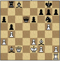 [На 16... Кc4 могло последовать эффектное 17. Кf6! (нет проблем у черных после 17. Фc4 e5!) 17... gf 18. gf Фc7 19. Лg1 Крf8 20. Фh7 Крe8 21. Крe2!! (в случае 21. Лg8 Крd7 22. Лg7 Крc6 черный король убегал из опасной зоны; а на 21. Лg7 следовал контрудар 21... Сb4!) , и черным непросто найти удовлетворительную защиту. Например: 21... Кb2 (или 21... b5 22. Лg7) 22. Лg8 Крd7 23. Фf7 Крc6 24. Лc1 Крb6 25. Лc7 Лg8 26. Фg8 Крc7 27. f7 с явным преимуществом белых.]