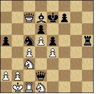 Пожертвовав пешками королевского фланга, белый ферзь прорвался в расположение противника, но... атаковать там, по большому счету, нечего. 28... Кa6! 29. Фb7 Фf2 Начало решающей контратаки по ослабленным тылам белых! 30. Лc1 Кc5 31. Кed1 Фd2 32. Фc7